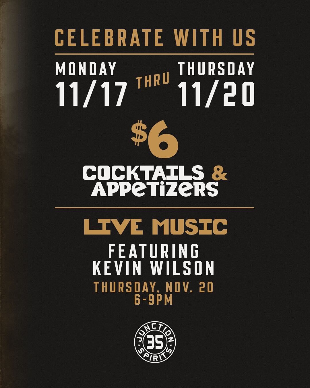 Come celebrate Junction 35’s 6th anniversary from November 17 – 20 with specials including:
